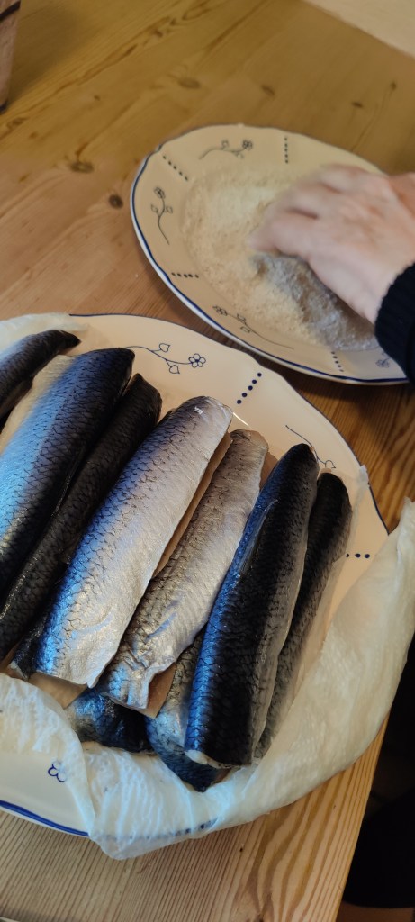 Vend fileterne i rugmel, salt og peber.