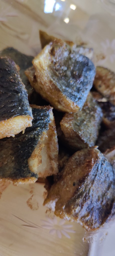 De skal stege 3-4 min på hver side – endelige ikke steges tørre.